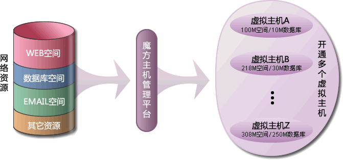魔方主机是云恒数据在虚拟主机技术基础上,最近推出的一个主机新产品。简单的来说,魔方主机是一个虚拟主机合集产品,它只用一次购买网络资源(如WEB空间容量、IIS链数、数据库空间容量等),即可开通多个虚拟主机,并可随时自由分配每个虚拟主机的可用资源。